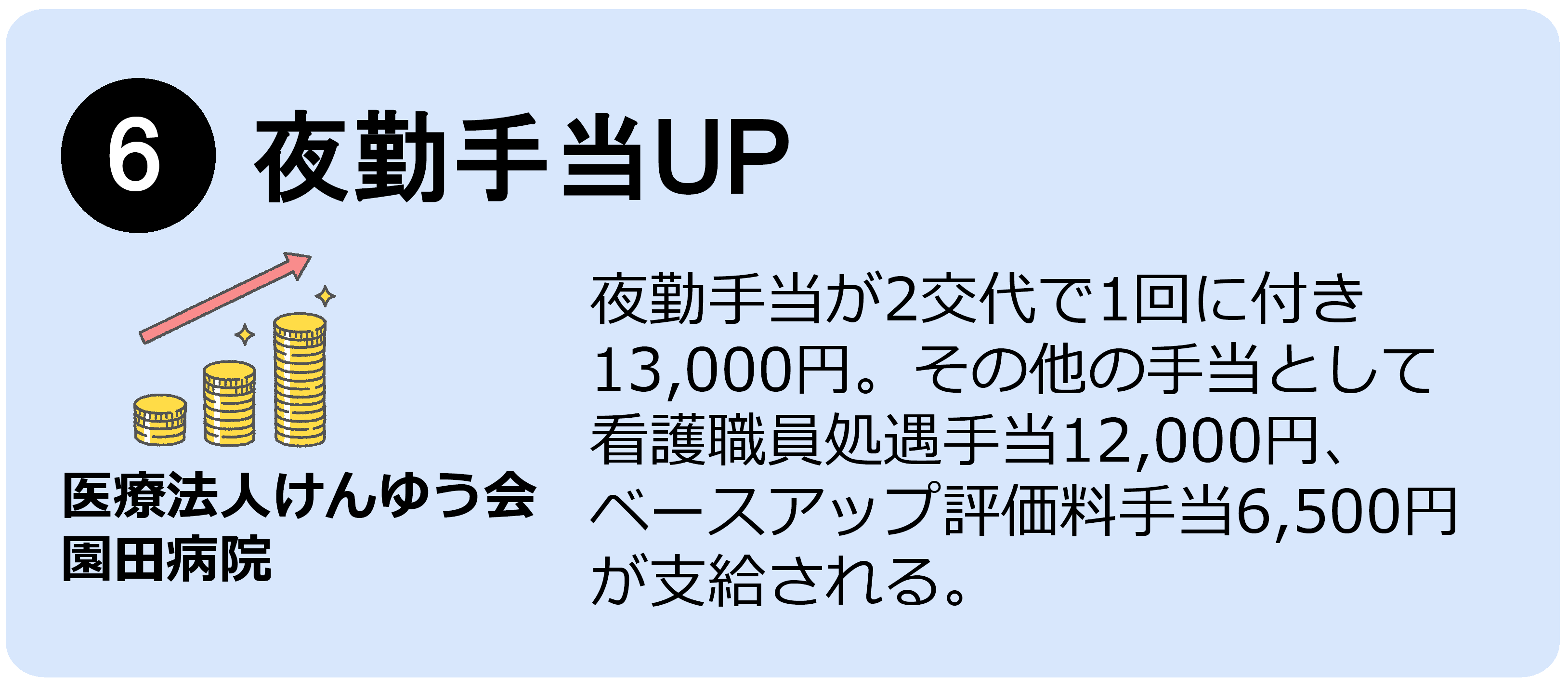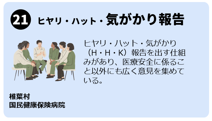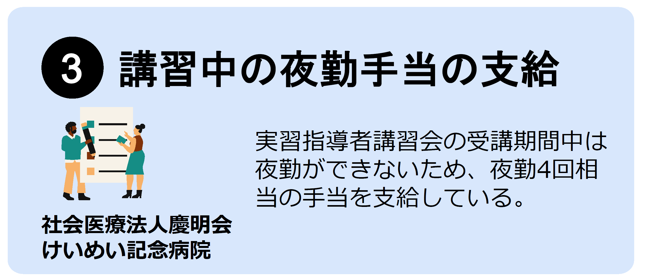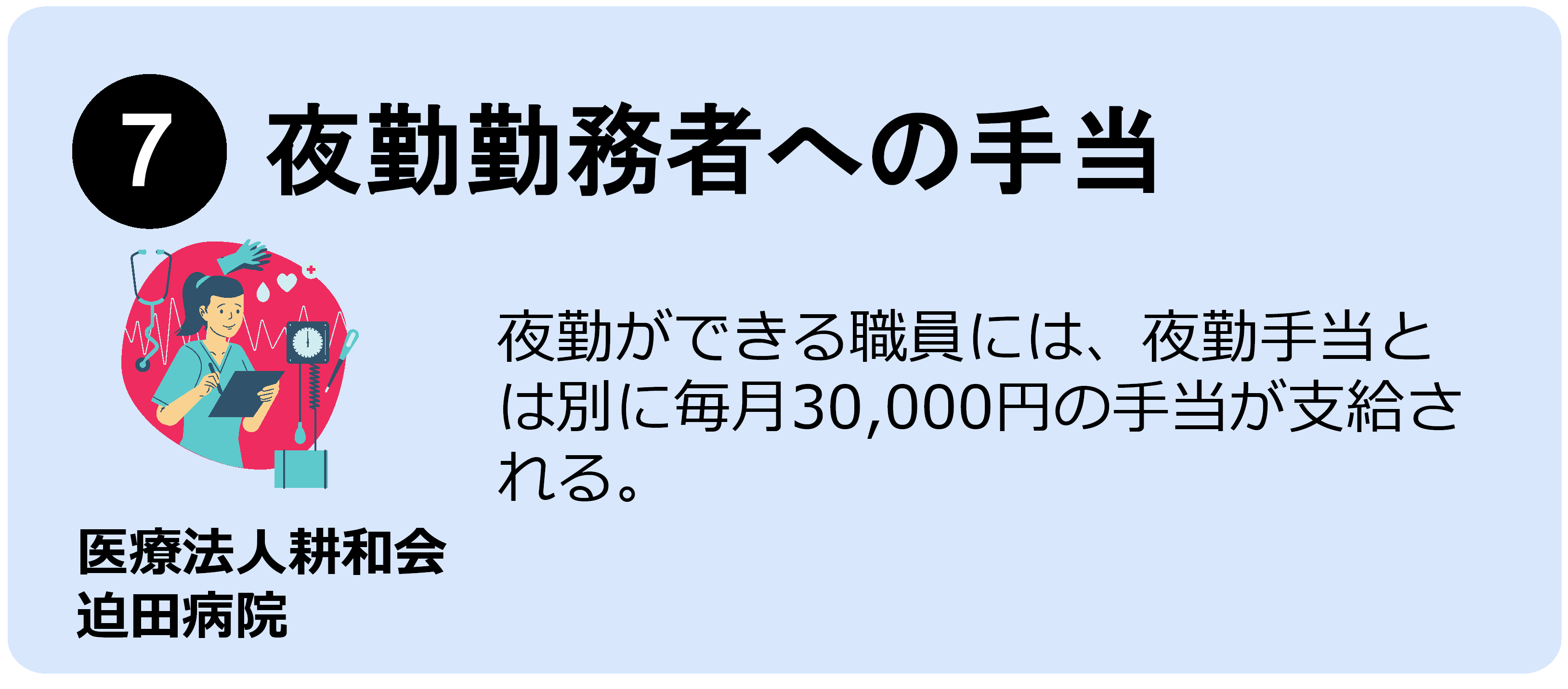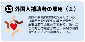 宮崎県では、医師、看護師等の医療従事者の離職防止、定着促進を図るため、「宮崎県 医療勤務環境改善支援センター」を設置し、社会保険労務士と医業経営コンサルタントが県内の医療機関からの医療勤務環境の相談内容に応じて専門的な助言・支援を行います。 [参考リンク]宮崎医療勤務環境改改支援センター |