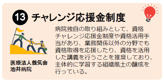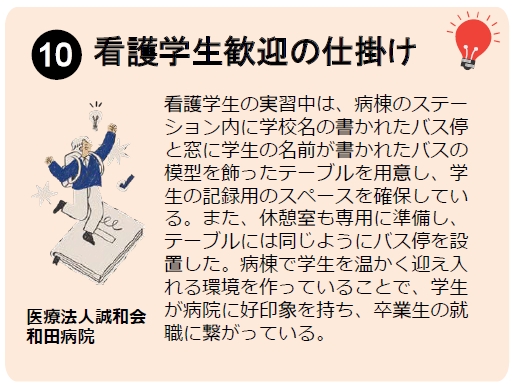 「看護職のワーク・ライフ・バランスの実現」に向け、さまざまな取り組みを行ってまいりました。 看護職の働きやすい職場づくり取り組みレポート 2014 ![]() |