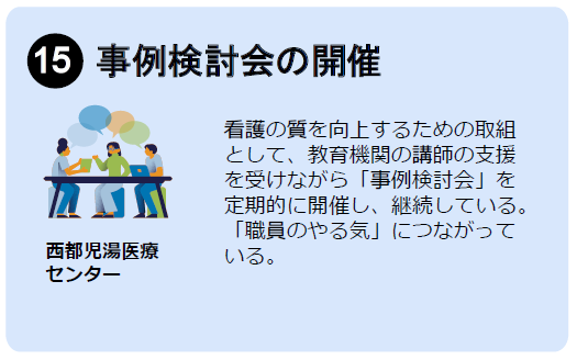 1)事業目的 県内医療機関の看護管理者が自施設の看護管理業務を実施できるよう、看護管理者の業務及び教育体制作りに関する相談・支援等を実施し、従事する看護職員の確保、勤務環境の改善、離職防止等につなげる。 2)訪問対象 ・200床未満の医療機関 ・200床以上で精神病床8割以上の医療機関 3)事業期間 令和6年度~令和8年度 4)事業内容 ・フォローアップ訪問(人材確保・育成・業務改善等) ・看護管理者のネットワーク構築 ・看護人材確保研修会・看護管理者能力向上研修会の実施 5)参考にしたい取組事例一覧 ・参考にしたい取組事例一覧27選 ・魅力を高める県内の取組事例集 |