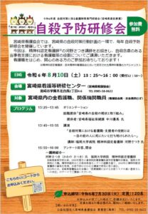 令和6年度自殺対策に係る看護師等専門研修会を下記のとおり開催いたします。