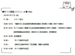 2021年度より、日本看護協会は「看護の日」をPRするラッピングバスを全国で運行してきました。2024年度が最終年度となり、5月17日(金)宮崎県にラッピングバスがやってきます!!