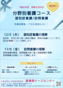復職支援研修「分野別看護コース 認知症看護/訪問看護」のご案内です!